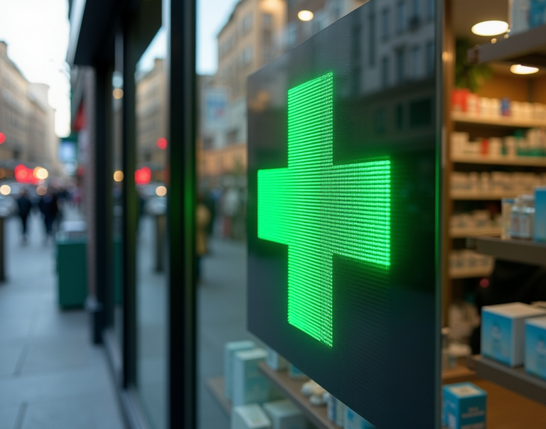 LED-Panels präsentieren Aktionen, Gesundheitsinformationen und Hinweise flexibel, auffällig und in Echtzeit – für Schaufenster, Wartebereiche und Theken.
