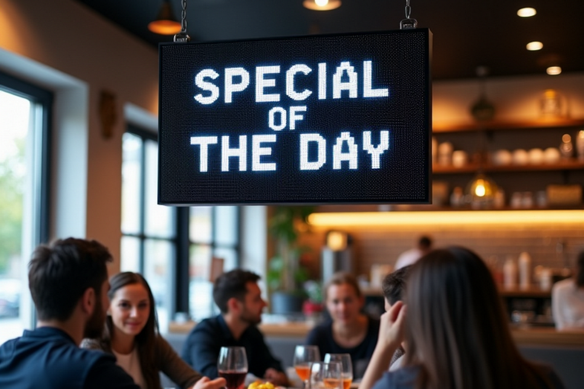 LED-Panels präsentieren Menüs, Tagesangebote und Specials flexibel und in Echtzeit – modern, hell und aufmerksamkeitsstark.